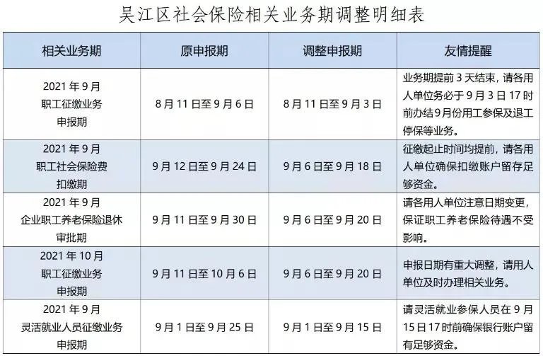 吴江社保业务期调整明细表 吴江社保工作时间