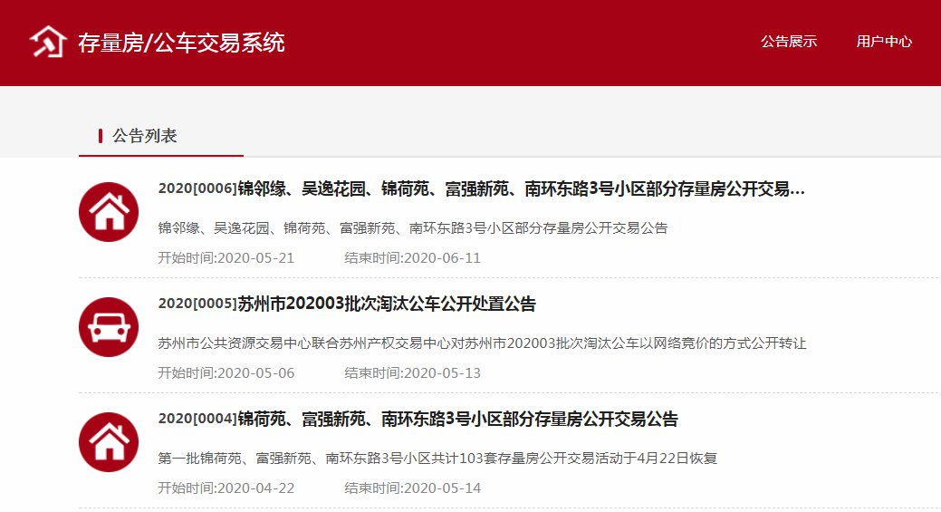 打开苏州产权交易中心存量房网页
