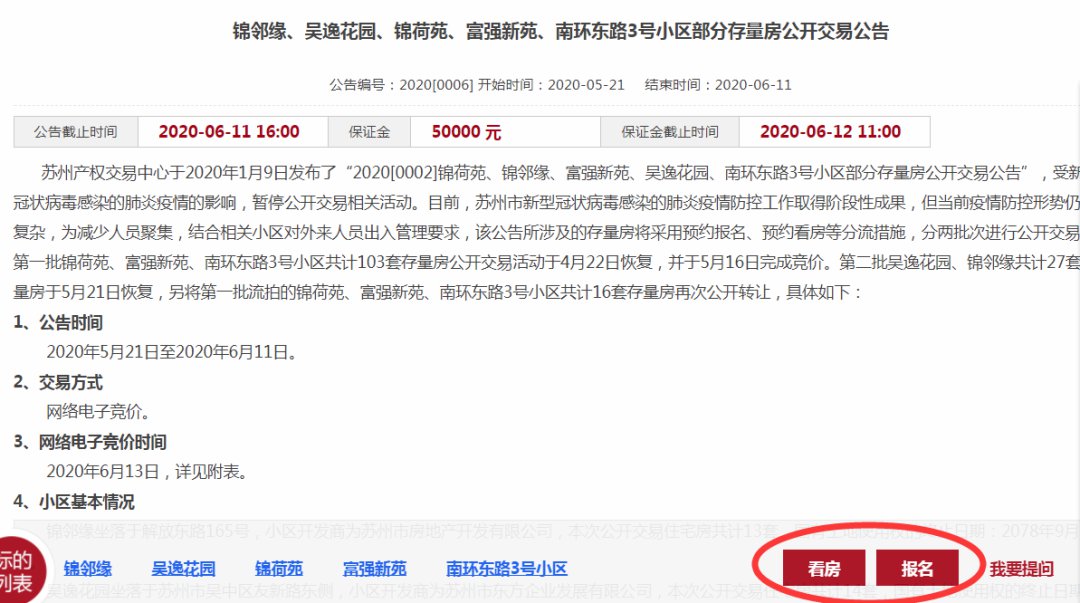 在公告展示页面,点击“报名”或“看房”,根据提示完善相关内容即可!