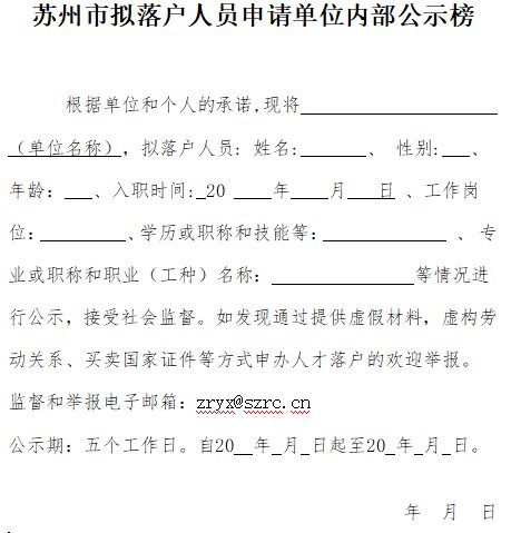 苏州市拟落户人员申请单位内部公示榜