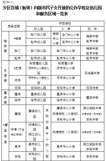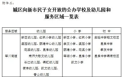 今年3月底前已公布开放学校和服务区域(如下图),将于7月底前公布公办校释放学位数。