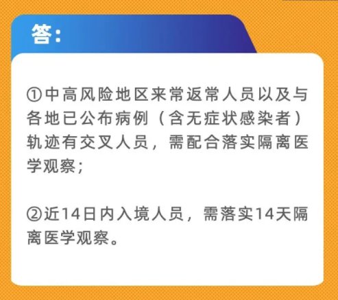 ①中高风险地区来常返常人员以及与各地已公布病例(含无症状感染者)轨迹有交叉人员,需配合落实隔离医学观察;