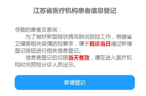 一登记:江苏省医疗机构患者信息登记表