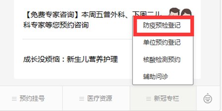 第三步:点击“新冠专栏”中的“防疫预检登记”。