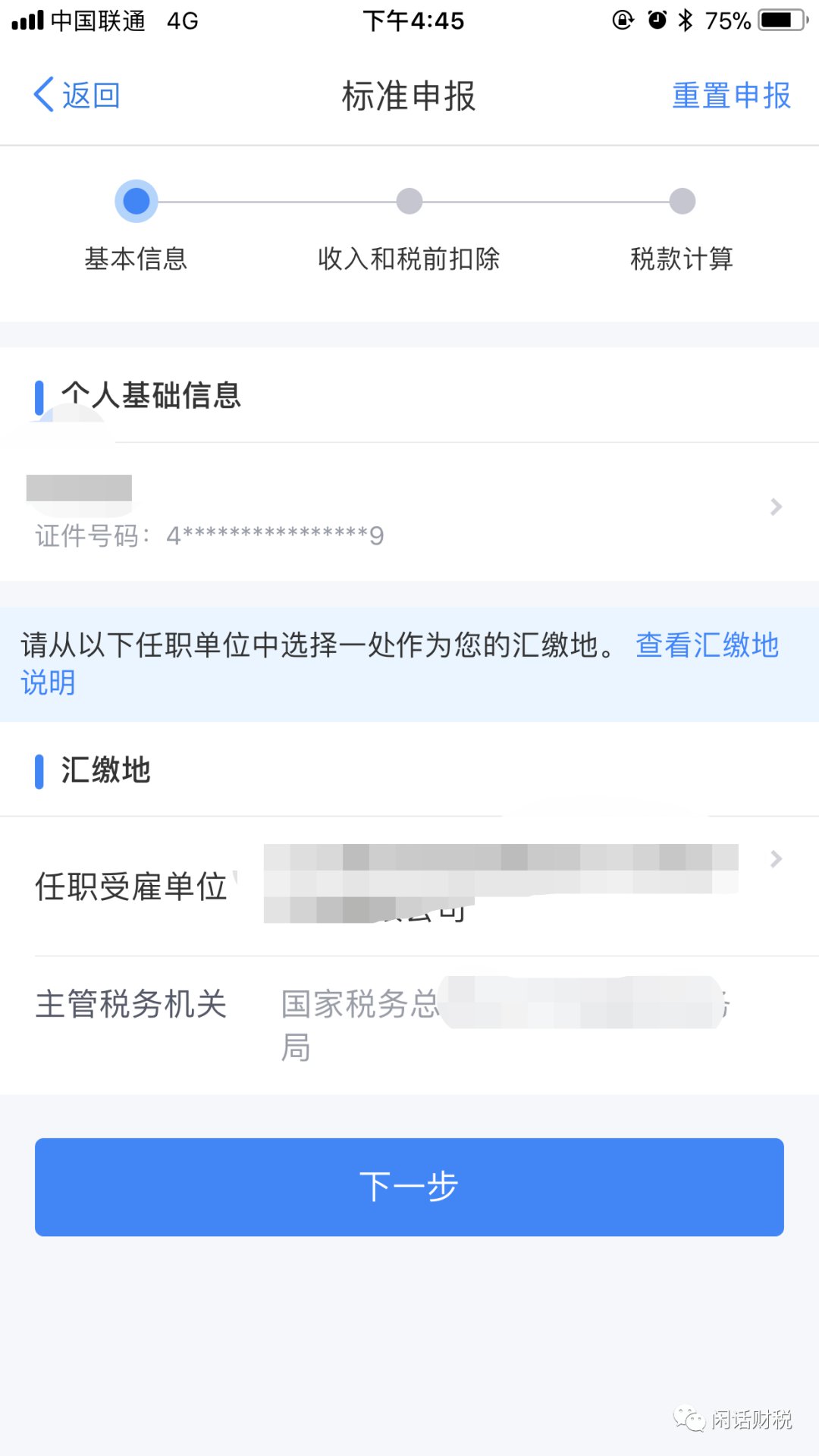 步骤六:简单核对一下自己扣除额部分是否存在有漏报错报,没有则点击下一步。