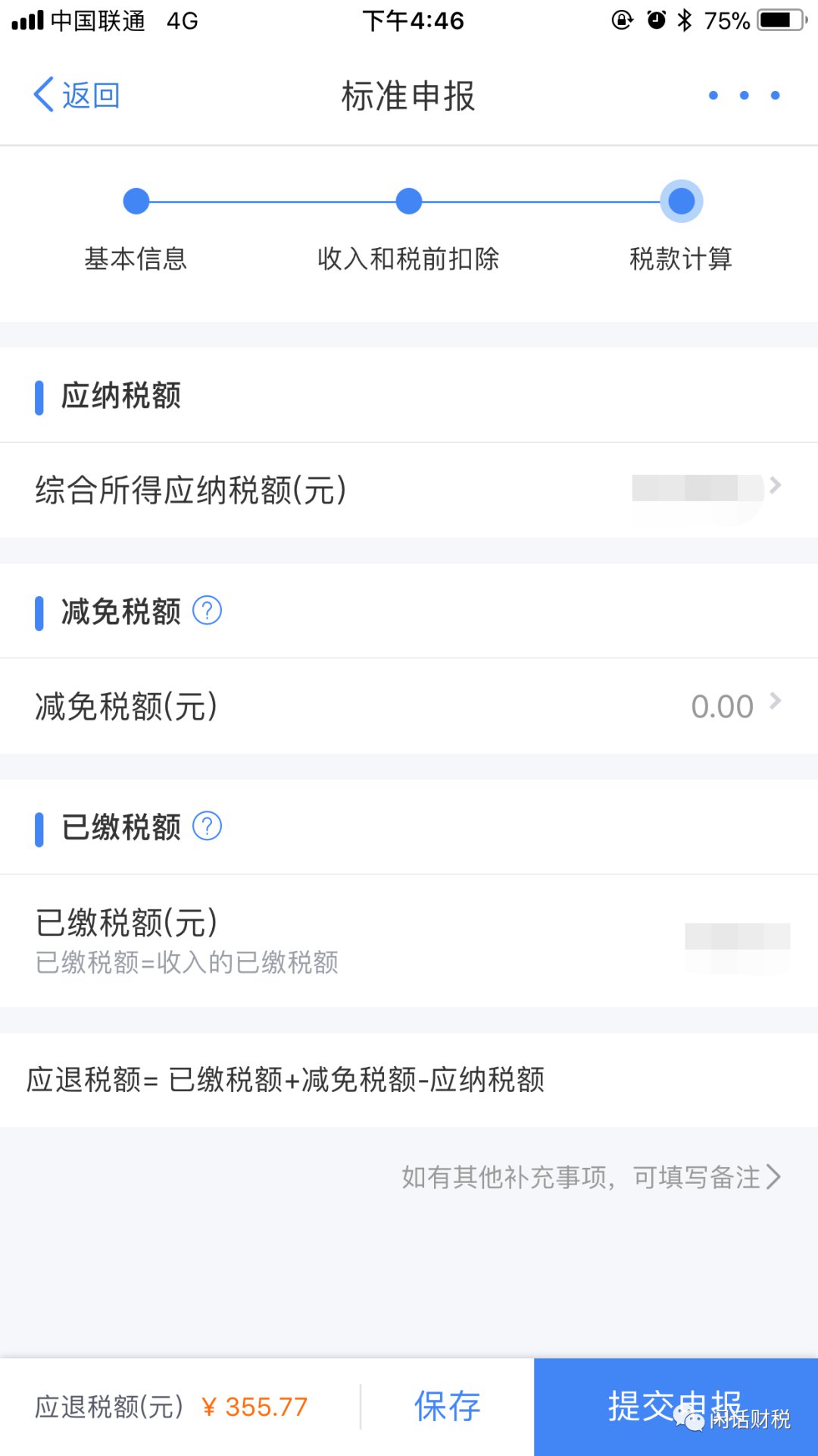 步骤七:之后系统将显示各位应退(补)的税款,如图所示,笔者可以退355.77元个人所得税。