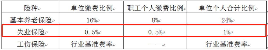 失业保险缴费比例: