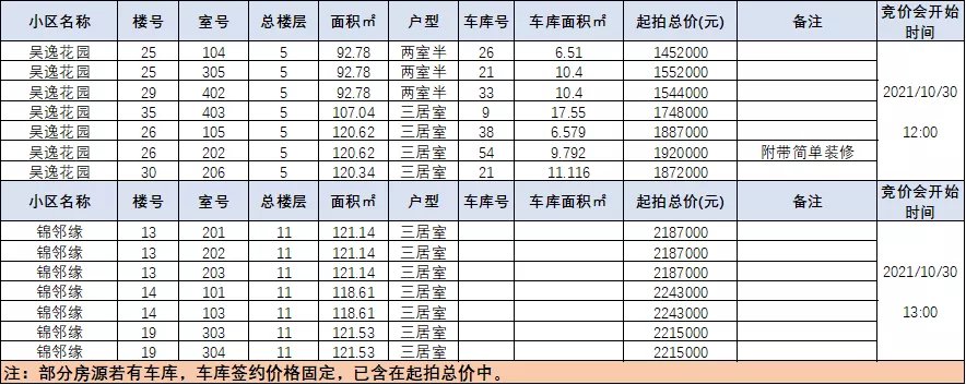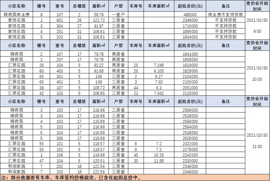 2. 本次公开转让的存量房若含车库,车库签约价格固定(已含在存量房起拍价中),需特别注意车库不能贷款。
