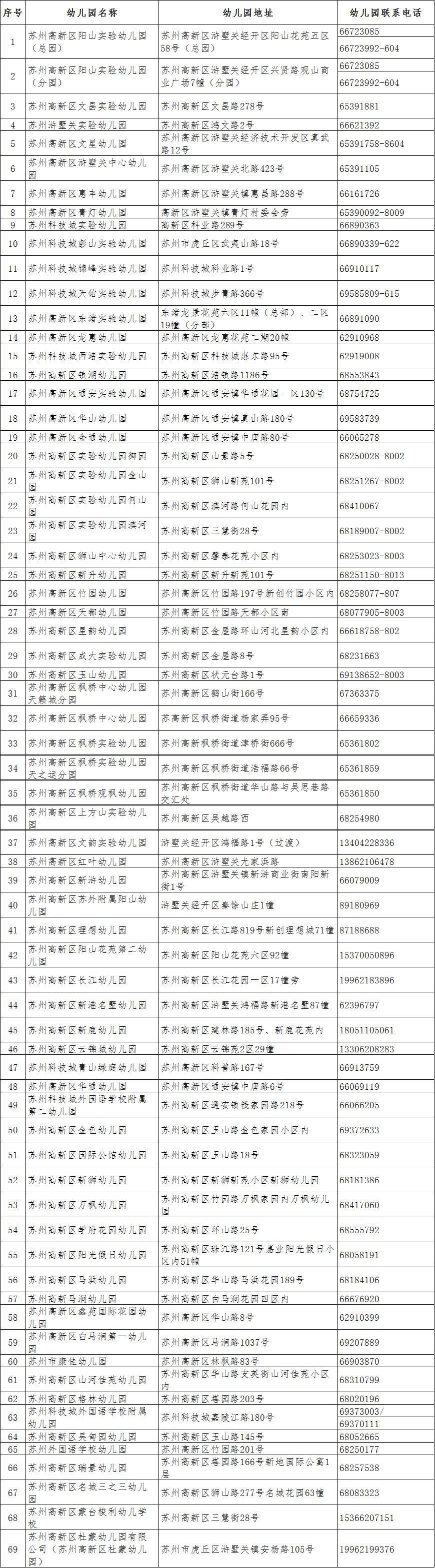 | 浒墅关经开区(镇) | 幼儿园 | 虎丘区名墅巷1号 | 68013022 |