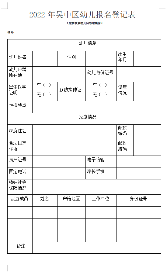 2022年吴中区幼儿入园报名登记表 2022年吴中区幼儿入园报名登记表怎么填