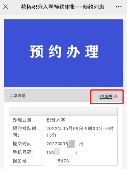 注意:待审批状态,并非预约成功。家长需凭审批成功后的微信消息通知才能前往办理。