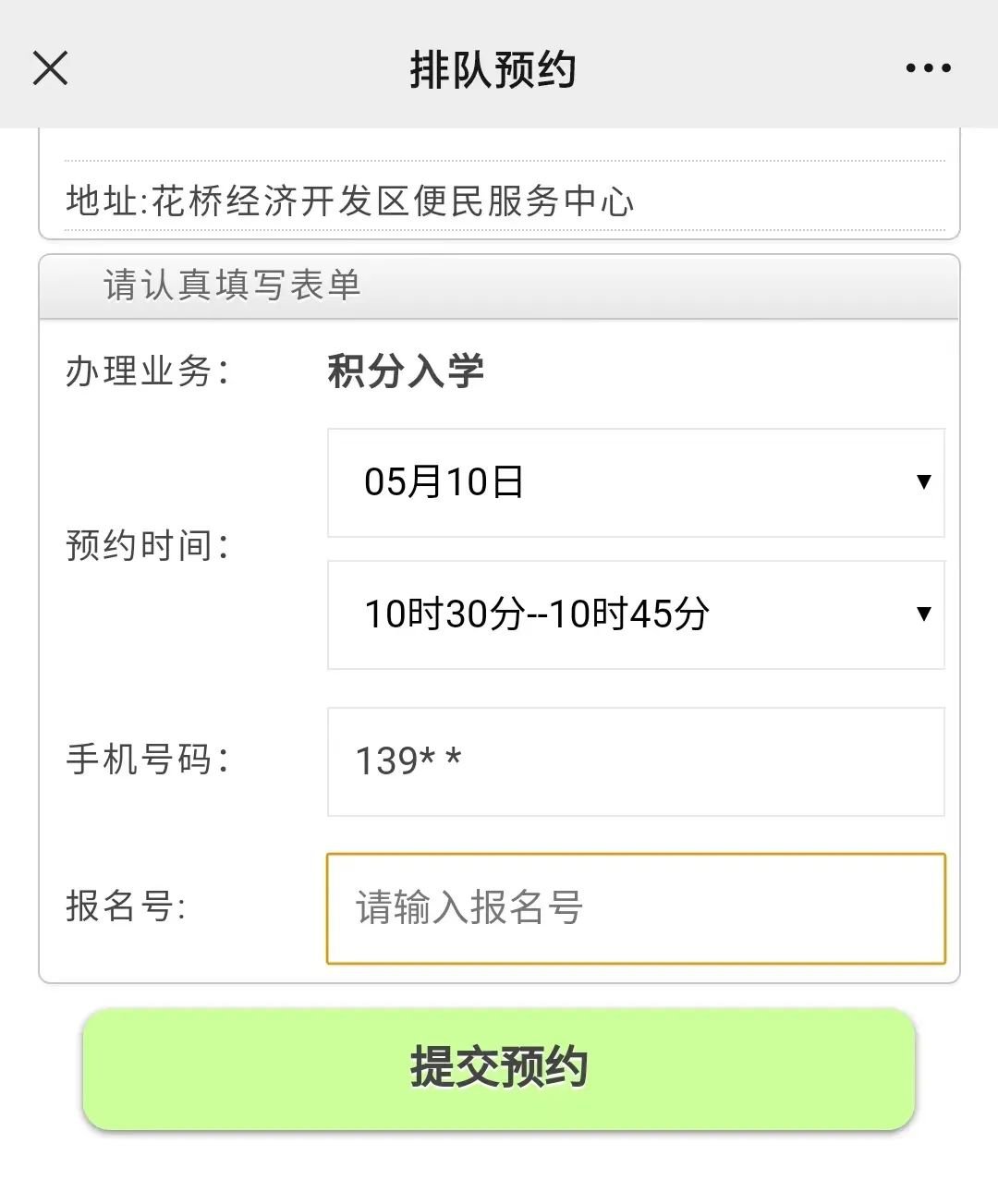注意:报名号是家长在进行积分入学网上申报时,由系统自动生成的。非常重要,不可以填错哦。