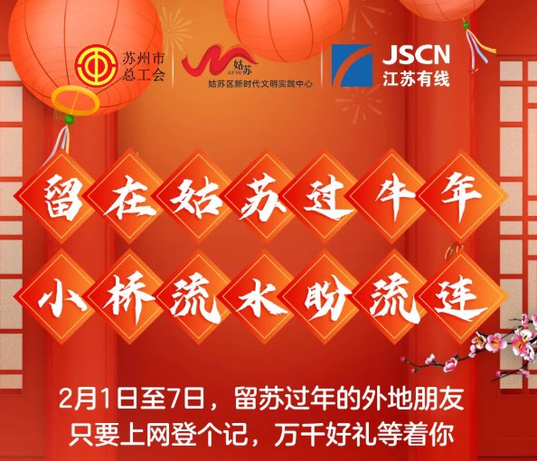 为了鼓励留苏的小伙伴们,姑苏区开展留在姑苏过牛年小桥流水盼流连线上活动,针对外地在苏职工推出一系列安心举措和关爱活动!