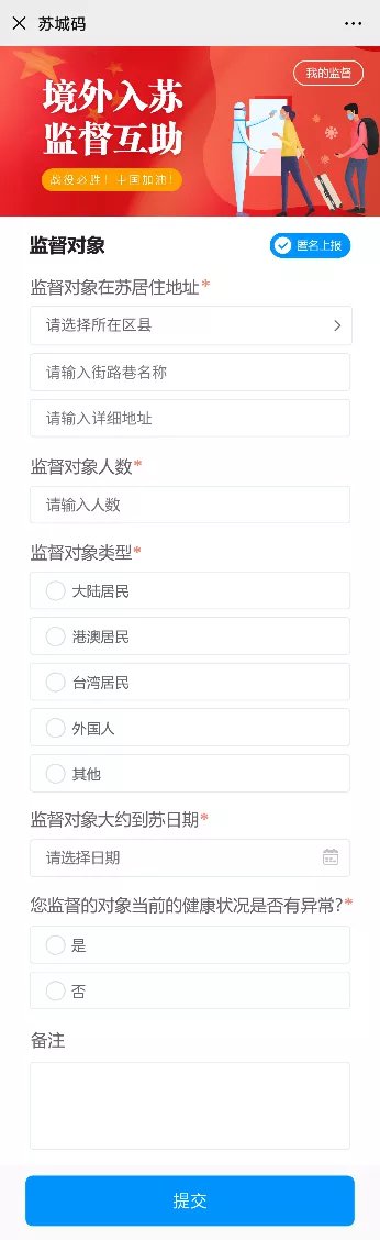 苏城码境外入苏监督互助怎么填