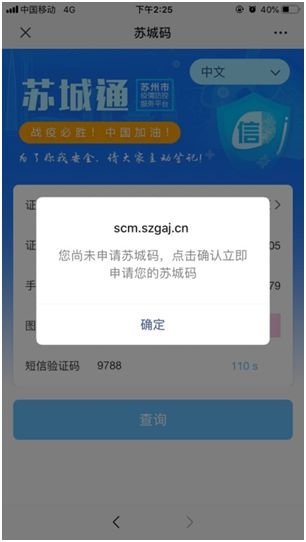 首次申请的,按照系统提示点击“确定”申请苏城码。