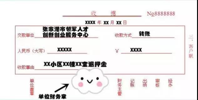 注意:收据反面需写上公司名称、公司账户及开户行信息