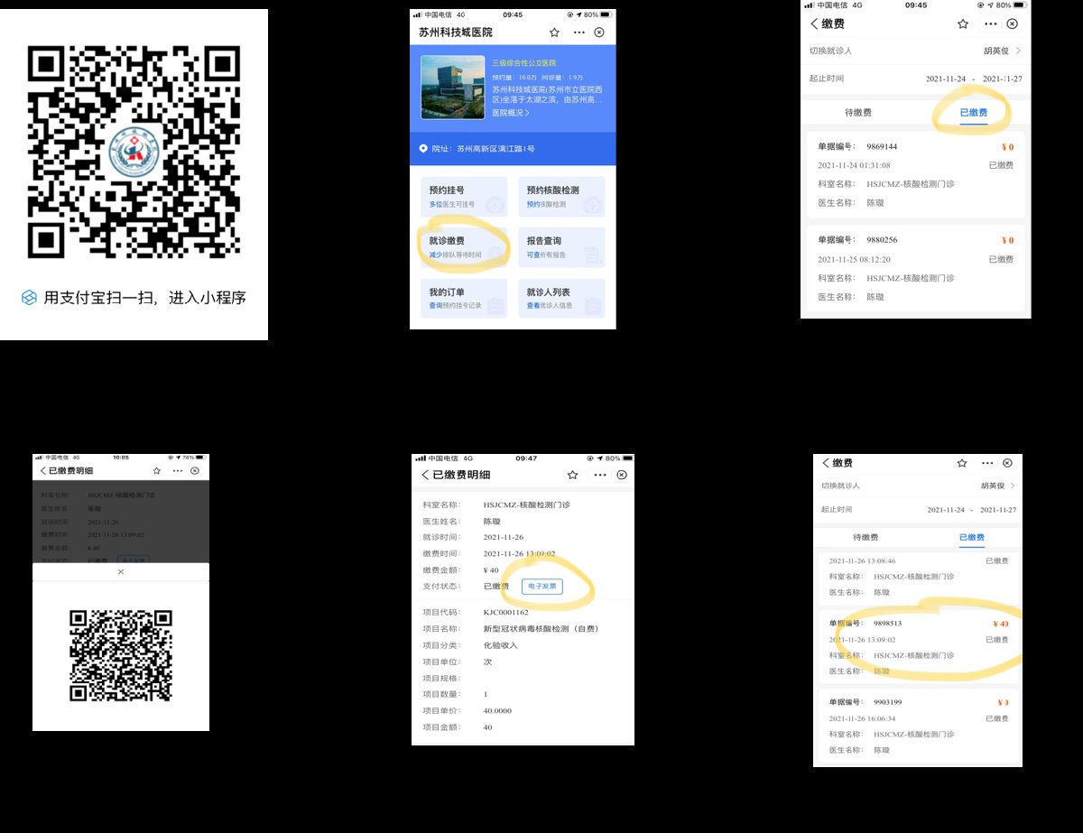 2、打开支付宝小程序,找到苏州科技城医院,打开就诊缴费,选中已缴费明细,点击电子发票,凭二维码打印发票。