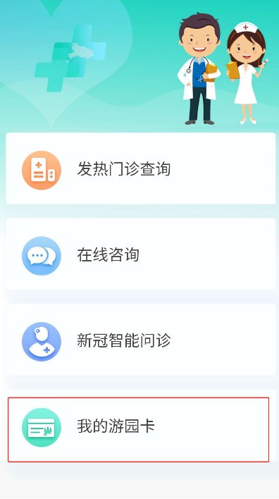 点击“我的”-“我的游园卡”或“首页”-“抗疫服务专栏”-“我的游园卡”进行游园卡的申领和使用。