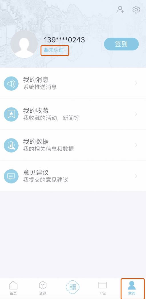 点击【我的】>【未认证】进入认证页面;