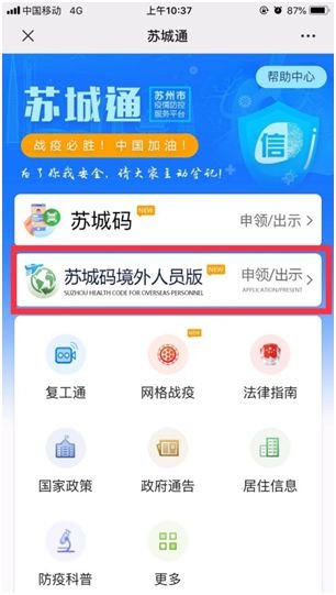 苏城码境外人员版 苏城码外国人怎么申请