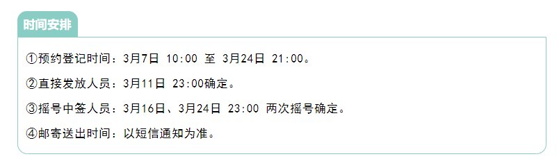 ①预约登记时间: 3月7日10:00 至3月24日21:00。