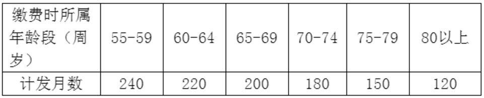 居民补充养老金月计发标准根据参保人员本人缴费当月所属年龄段,将个人缴费与政府补贴之和除以计发月数后确定,各年龄段计发月数见下表: