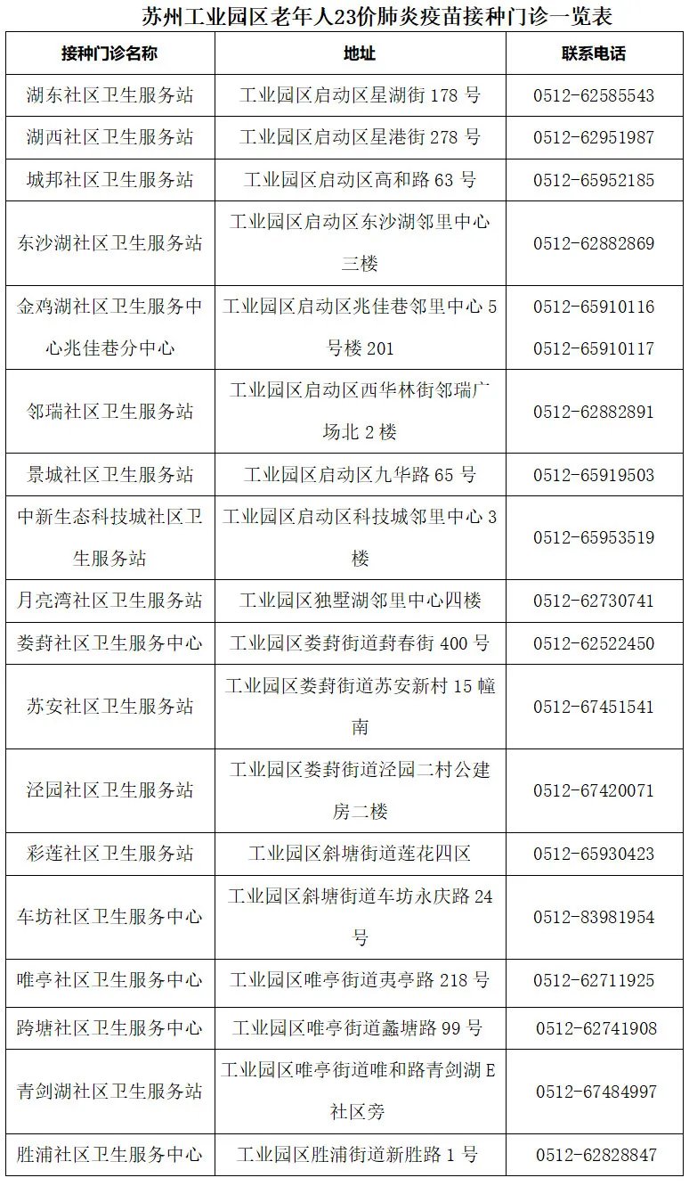 2020苏州园区老年人免费肺炎疫苗可以常年接种啦