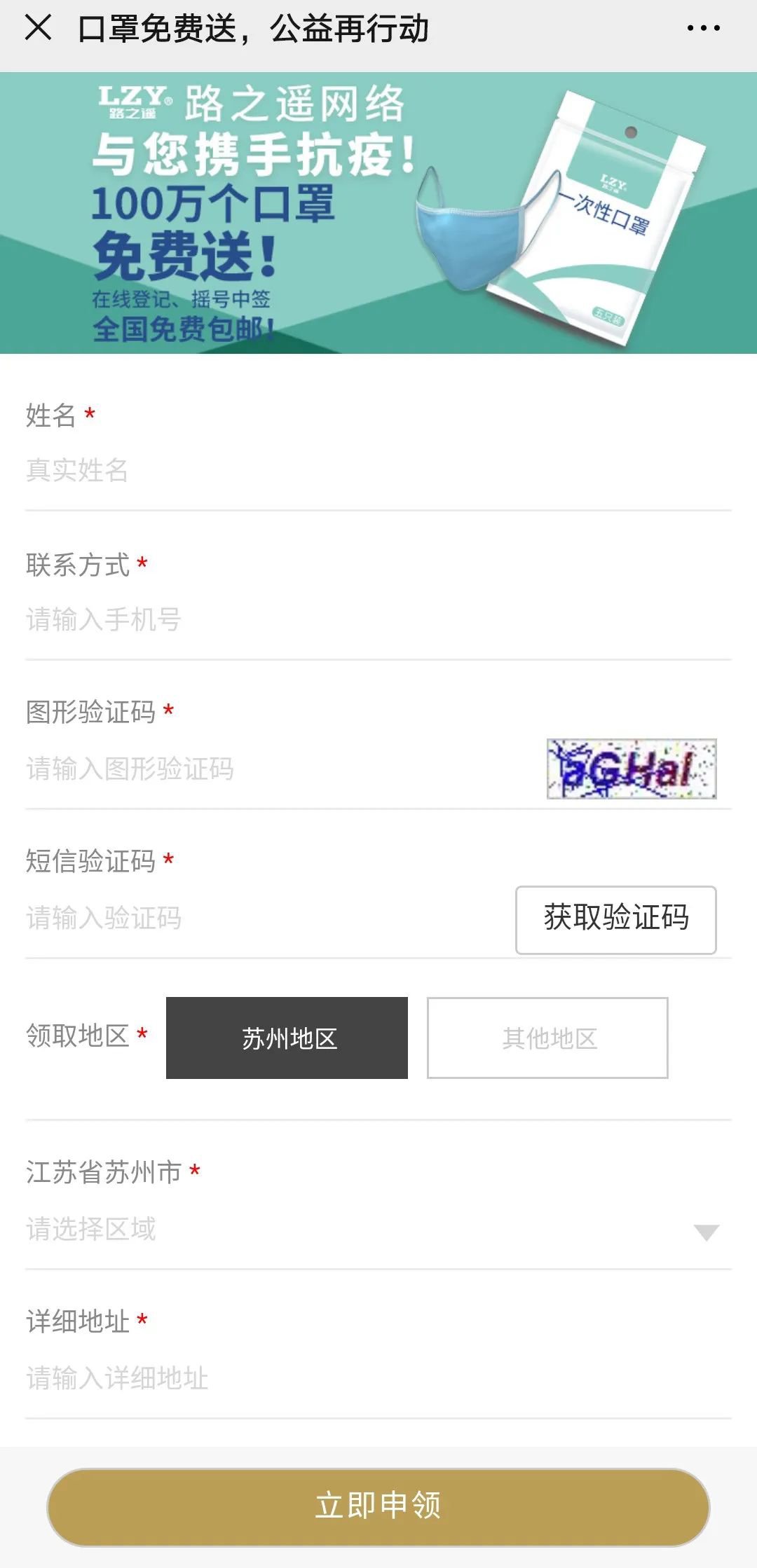 2、口罩数量为100万只,苏州地区50万只,其他地区50万只,前2万名直接发放,2万名后摇号中签后发放。