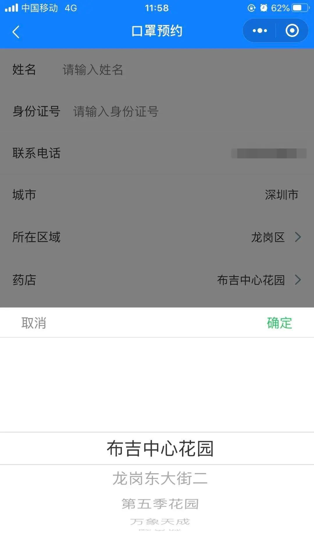 注:预约登记需要填写个人姓名、身份证号、手机号(中签信息接受)选取预约门店和口罩类型。