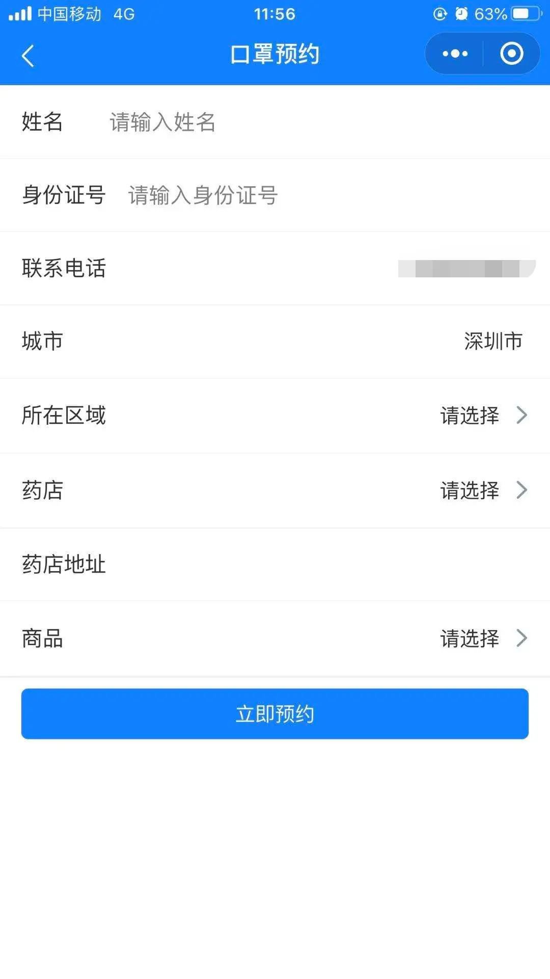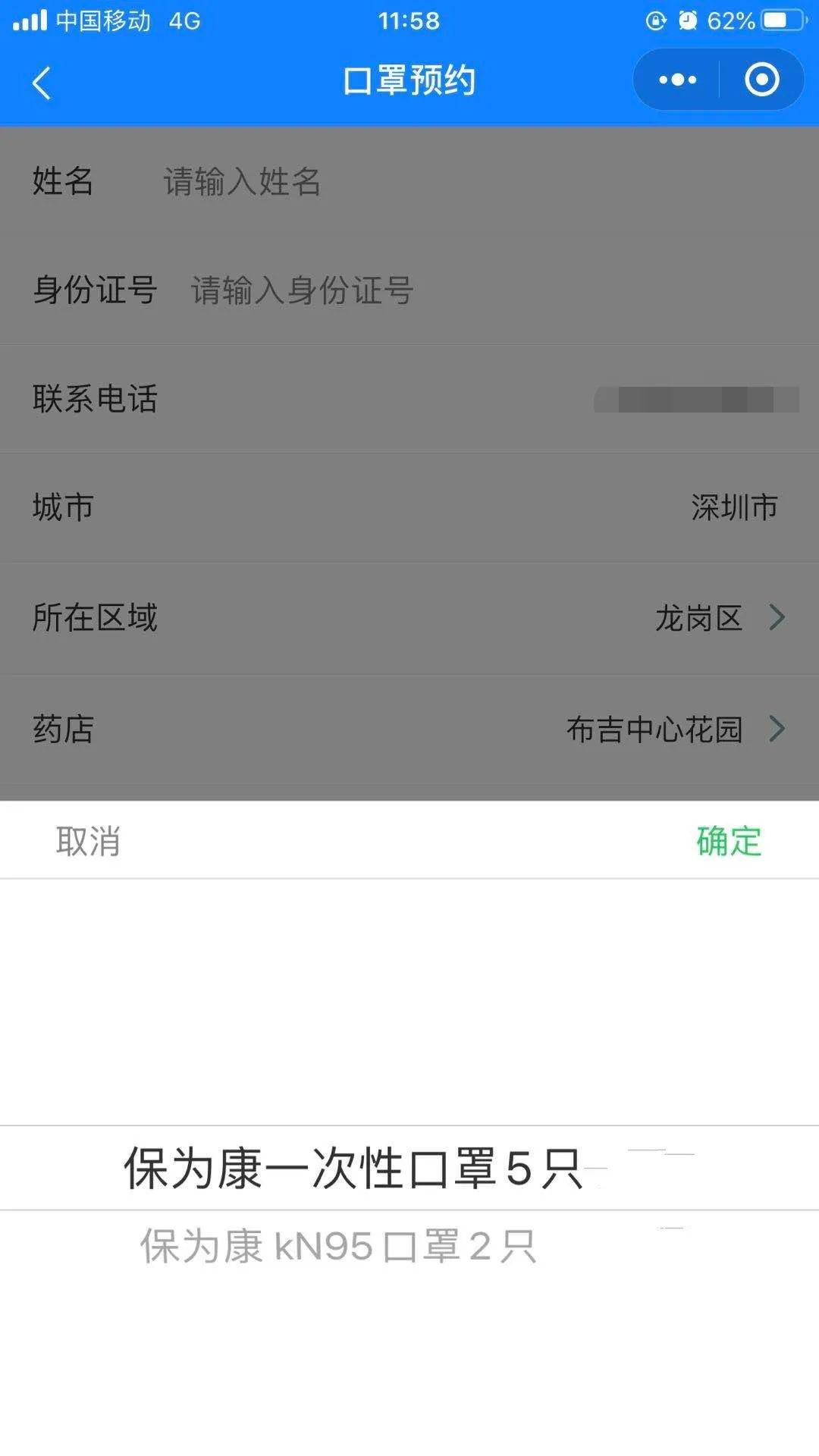 注:预约登记需要填写个人姓名、身份证号、手机号(中签信息接受)选取预约门店和口罩类型。