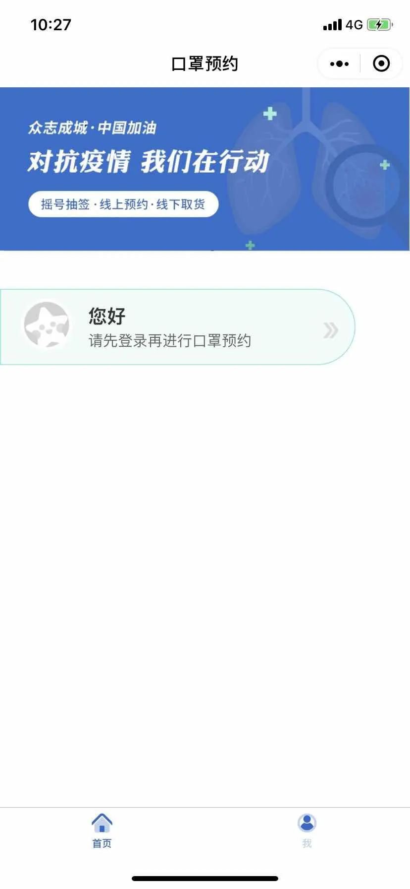 3、登录之后点击最下方的【首页】,再点击【进入口罩预约】服务页面