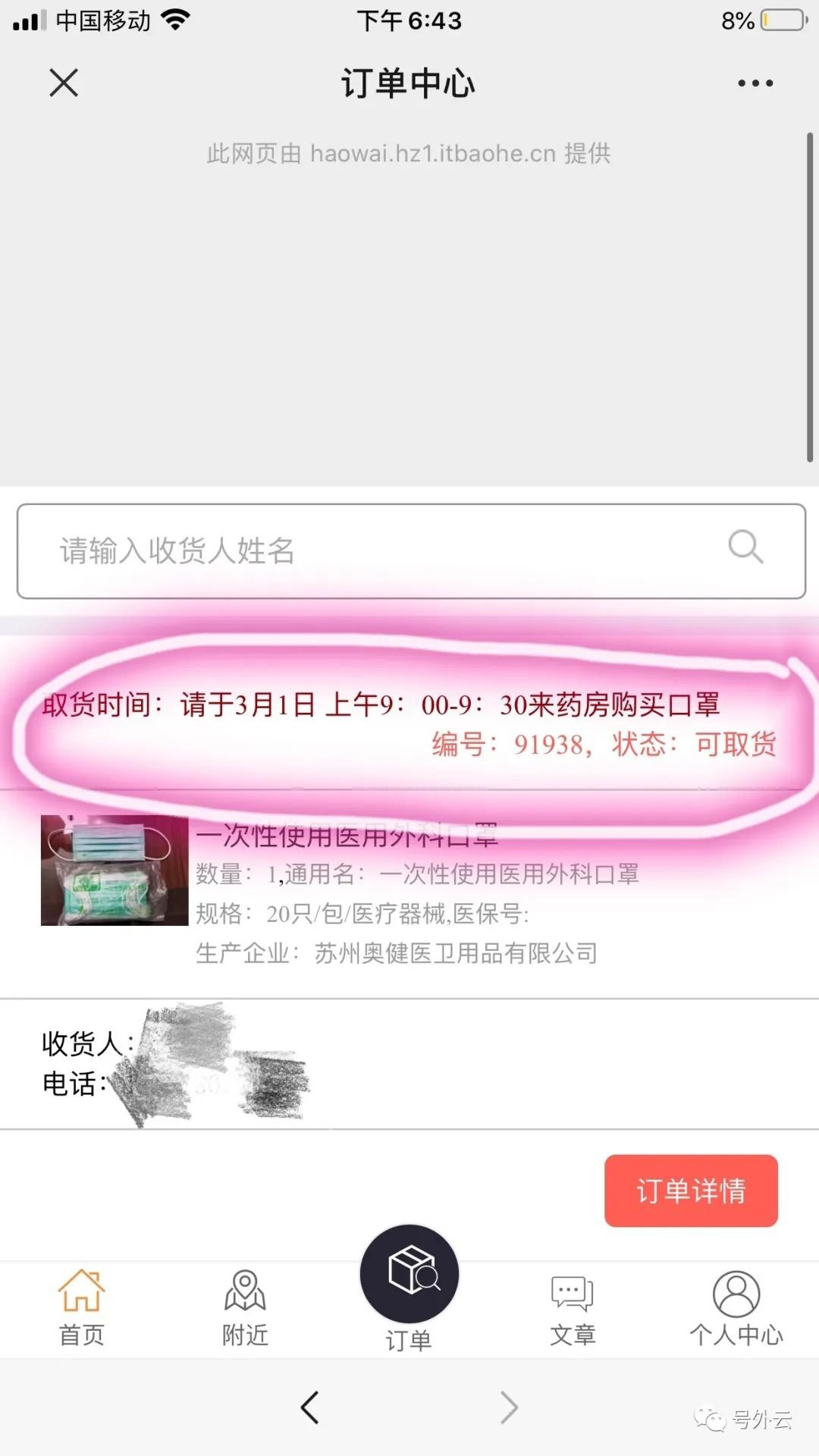 第四步:经常性查看订单取口罩时间。