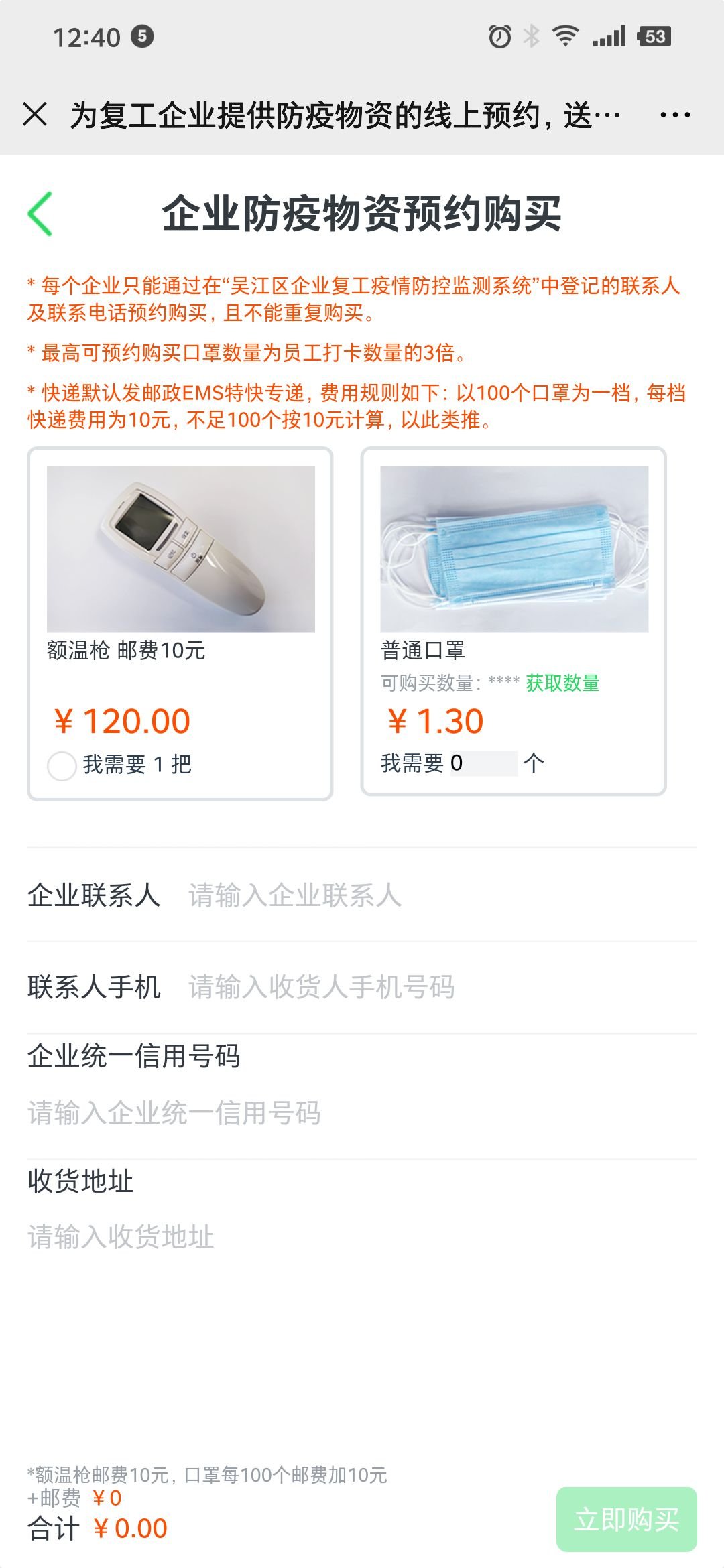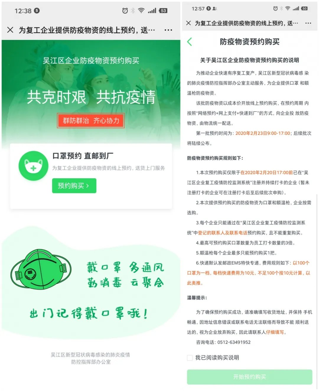 进入“吴江区企业防疫物资预约购买页面”,按照购买说明,预约购买防疫物资。