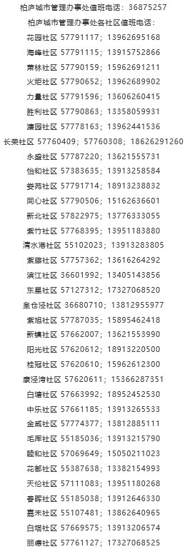 昆山柏庐办事处各社区返回人员社区登记电话汇总
