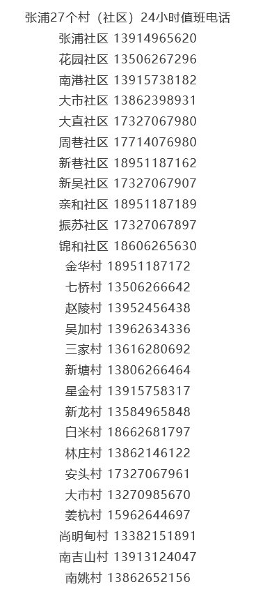 昆山市张浦镇返苏人员社区报备登记电话汇总