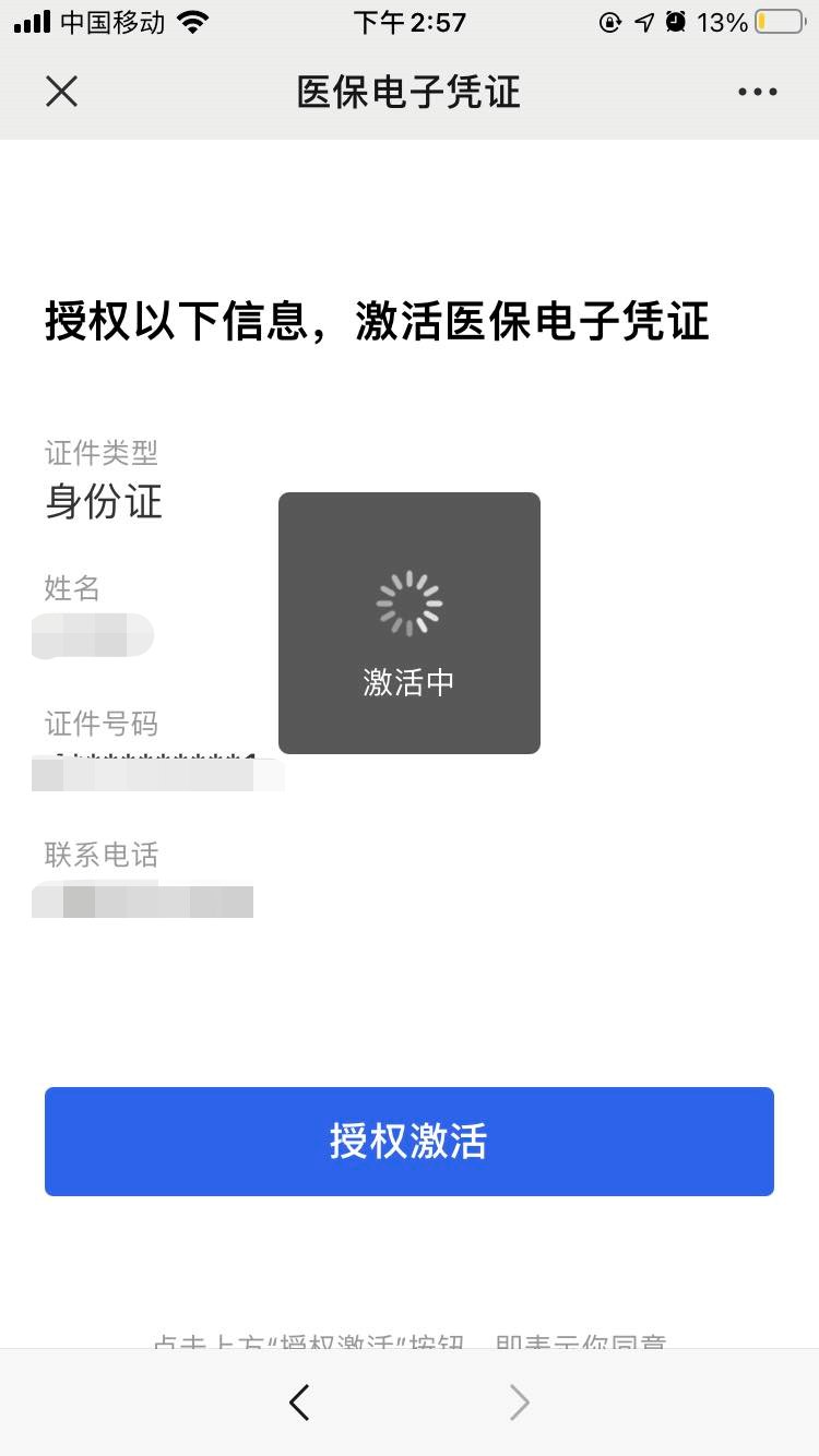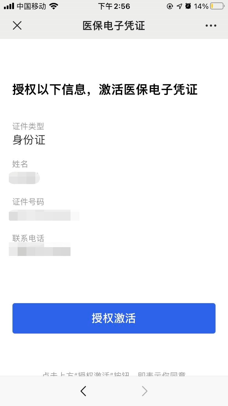 授权以下信息,激活医保电子凭证