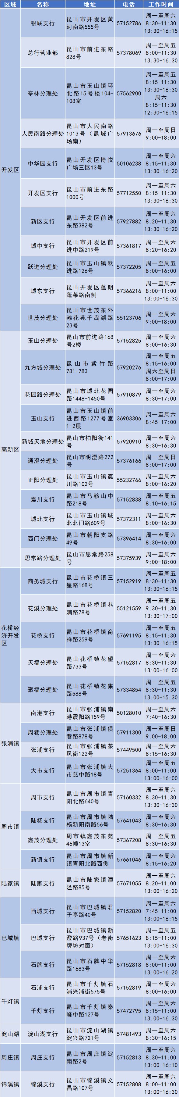 昆山农商银行网点清单 附近昆山农商银行网点