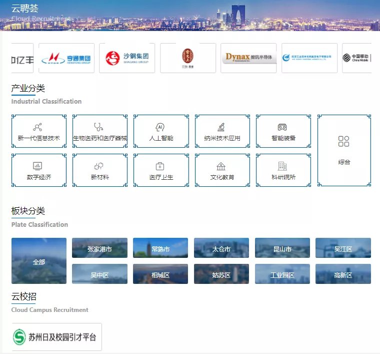 “云聘荟”以高端岗位为特色,是苏州高端人才供需对接服务平台。“云聘荟”设有产业分类、十大板块、云校招三大栏目,其中产业分类主要有新一代信息技术、生物医药和医疗器械、人工智能、纳米技术应用、智能装备、数字经济、新材料、医疗卫生、文化教育、科研院所和综合,精准分类,满足不同人才需求;云校招为高校毕业生提供更多就业机会。