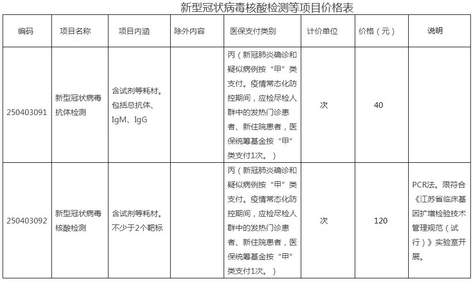 核酸抗体检测项目计价单位由按“项”收费,调整为按“次”收费。