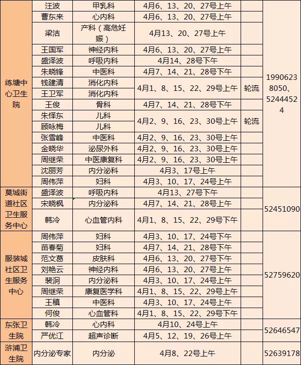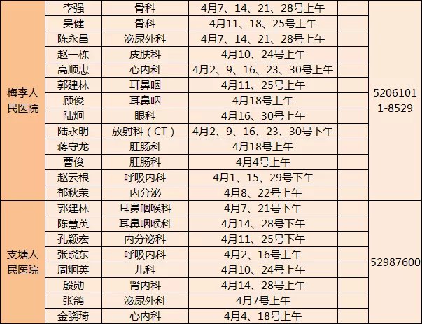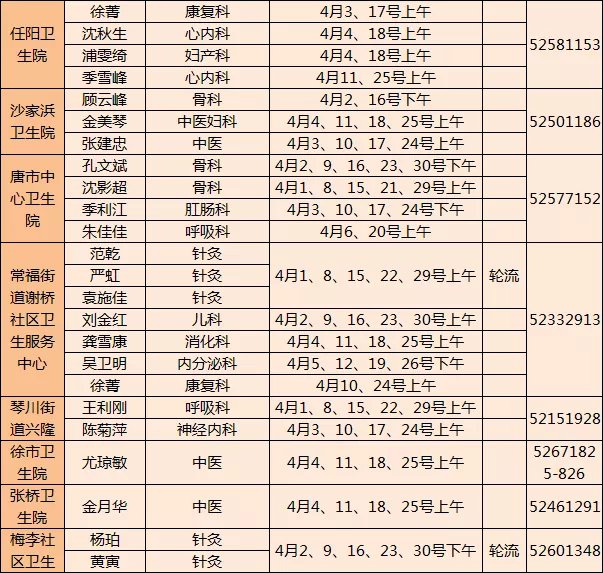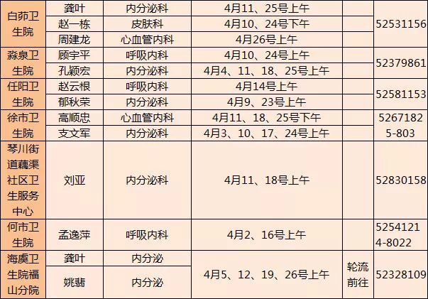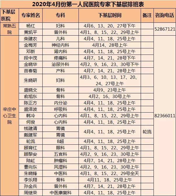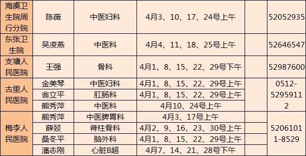 常熟市级医院专家下基层门诊四月排班表