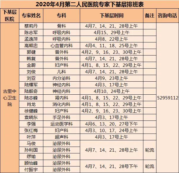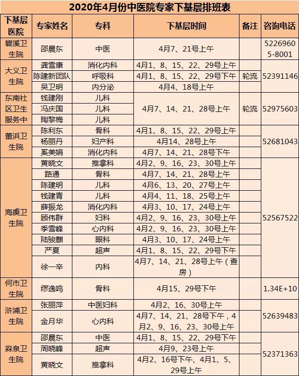 4月份一院、二院、中医院专家下基层门诊安排新鲜出炉,快来看看吧。