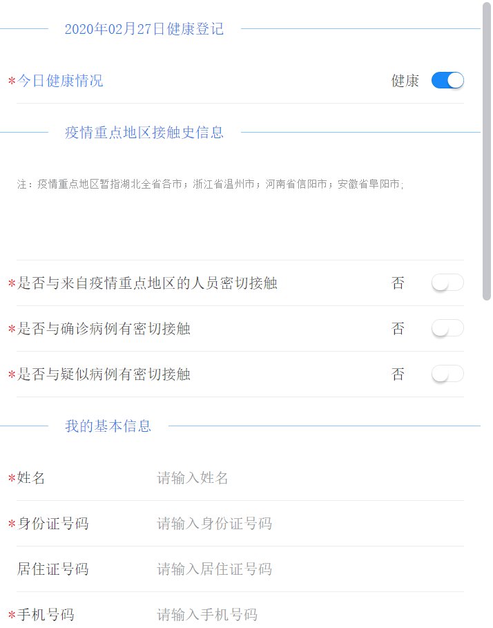 沙溪镇内企业把复工时间、员工构成、员工何时来从哪里来等信息录入平台,从外地返回沙溪的个人则根据不同的区域分别填报健康状况、居住信息、与疫区接触情况、抵达日期等信息。