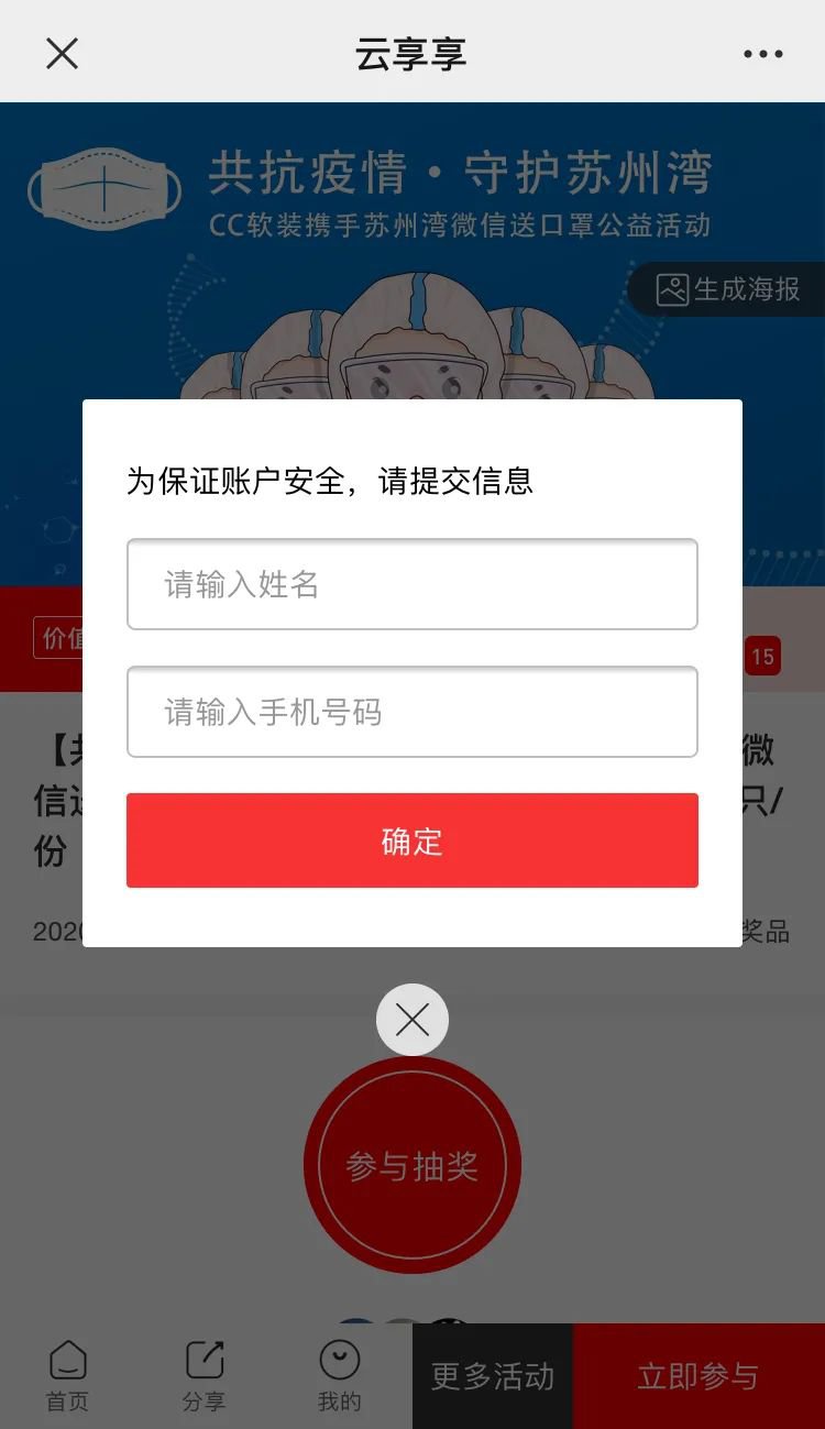 为减少人员流动与集聚,“送口罩公益活动”将按照电话或微信通知分批领取。