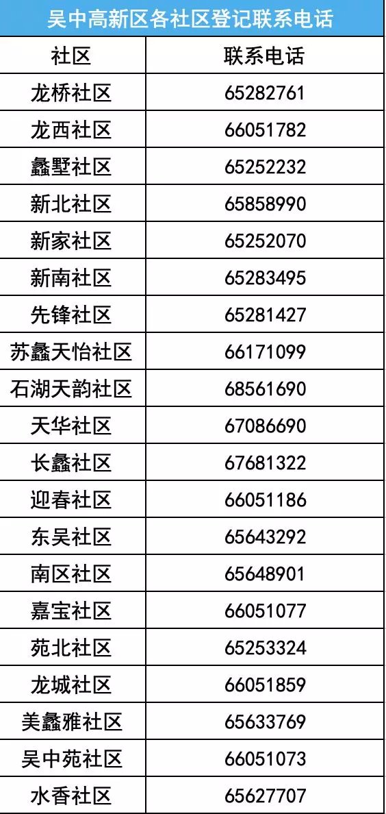吴中高新区各社区登记电话及对象(吴中区居委会电话号码)
