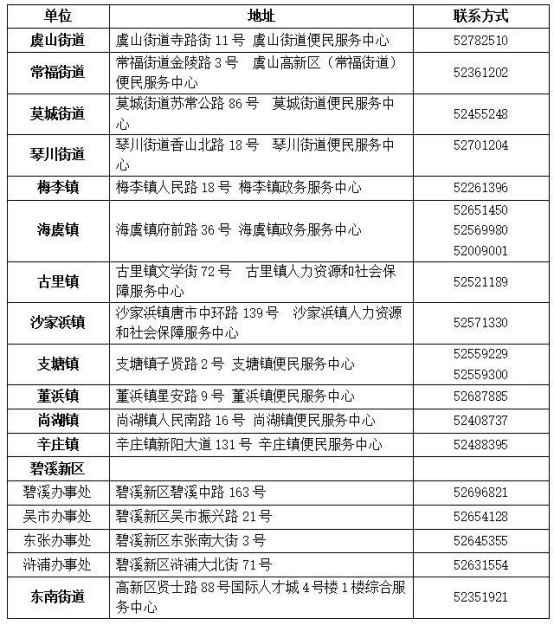 2020常熟街道及银行社保业务办理点 常熟社保在哪里办理