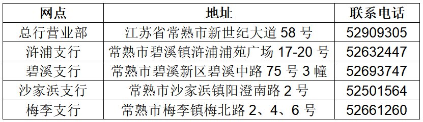 ♦常熟农村商业银行目前已开通102家城乡网点,可进行社保业务受理,戳详细网点信息。