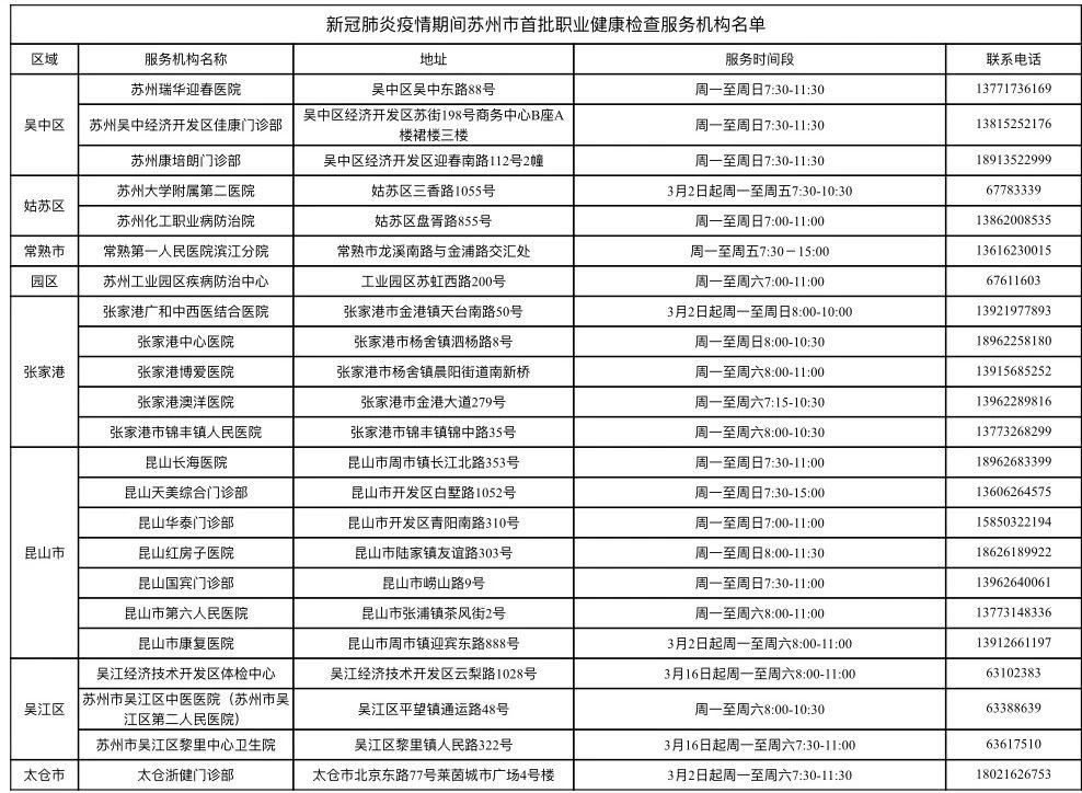 苏州市职业健康检查服务机构名单(苏州市职业健康检查服务机构名单公示)