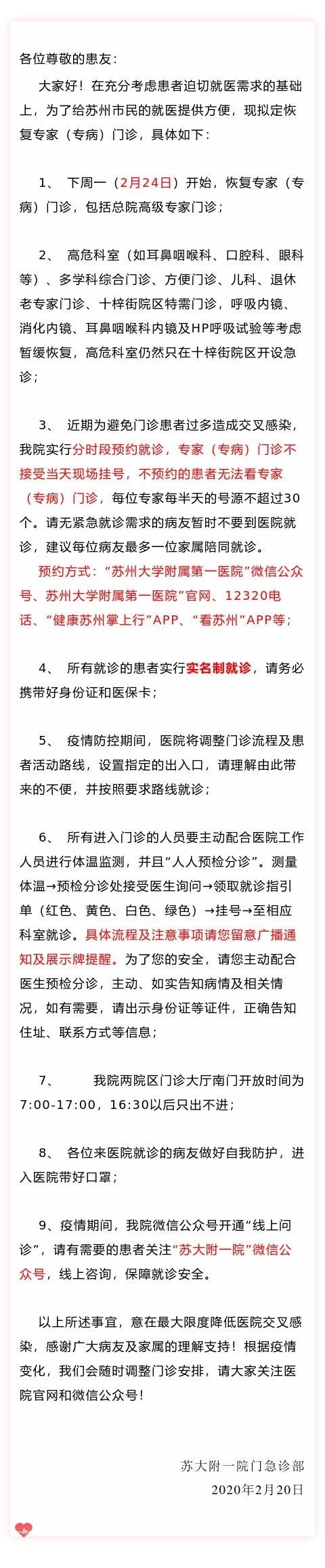 苏州各大医院门诊及预防接种服务恢复通知汇总
