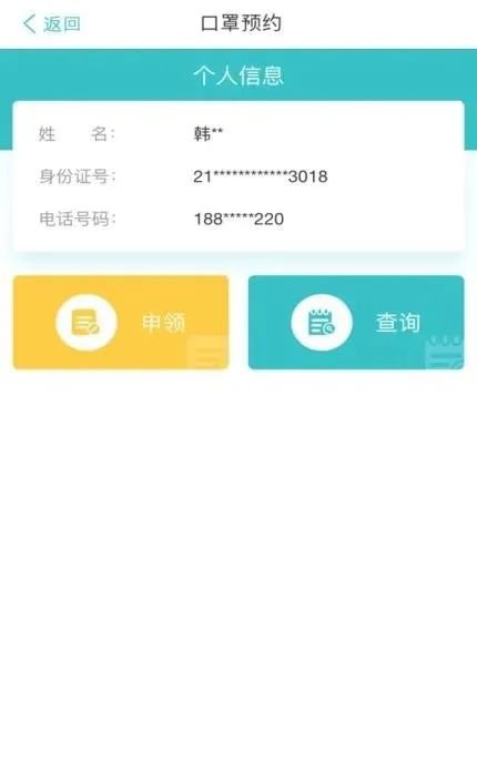 2、已注册用户登录后点击【预约口罩】浮窗或【预约口罩】按钮,若非阳光医保注册用户,先点击右上角【注册】按钮,进入用户注册流程。页面跳转至口罩预约页面。展示如下图: