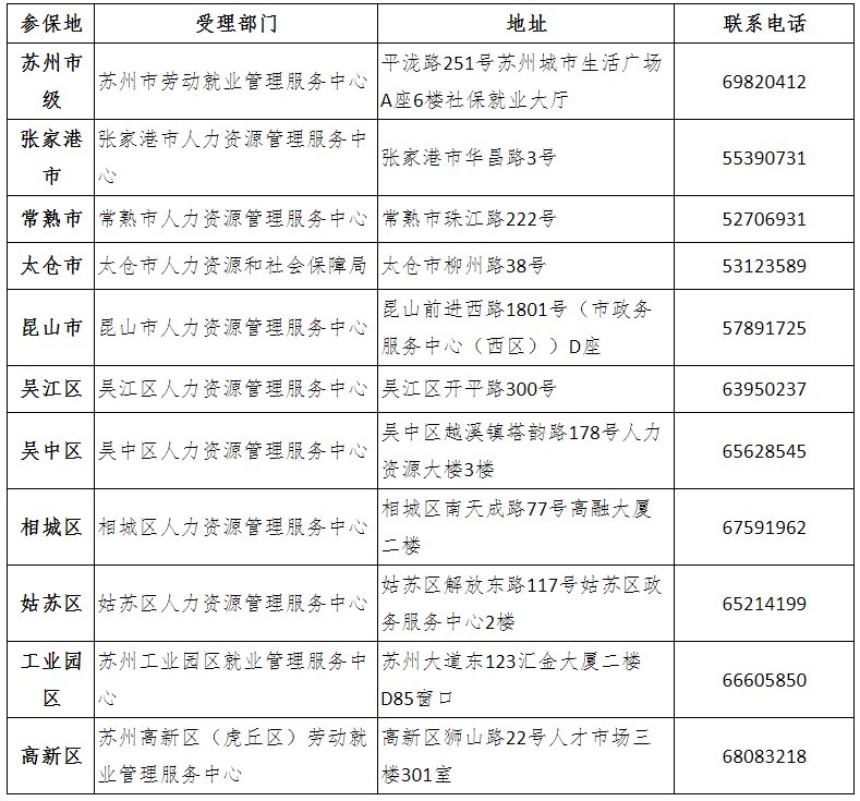 五、苏州市各地稳岗返还经办机构和联系方式